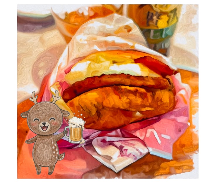 ちなみにですが、ポテトは子鹿たちに与え、最初にスーパーで買ったサラダを食べてからのバーガーと謎に健康に気を遣ったにも関わらず、このあとラーメンを食べるという暴挙に出た。