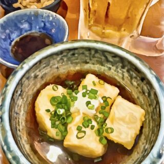 程よいマヨ辛子、そしてチーズ風味の豆腐が香ばしく炙られている。自分がもし豆腐だったら、この料理になることを希望したい。