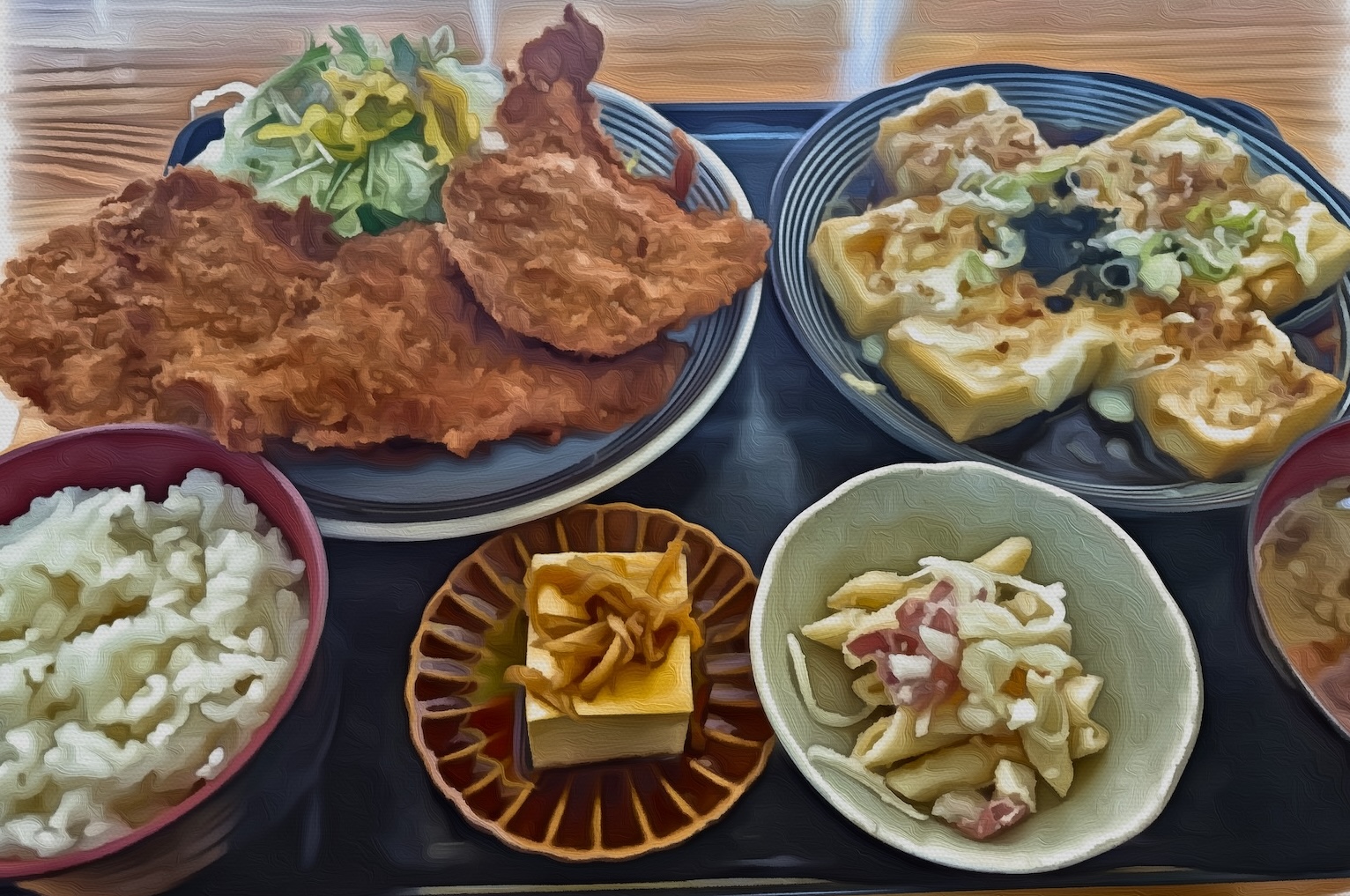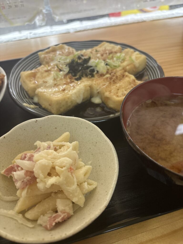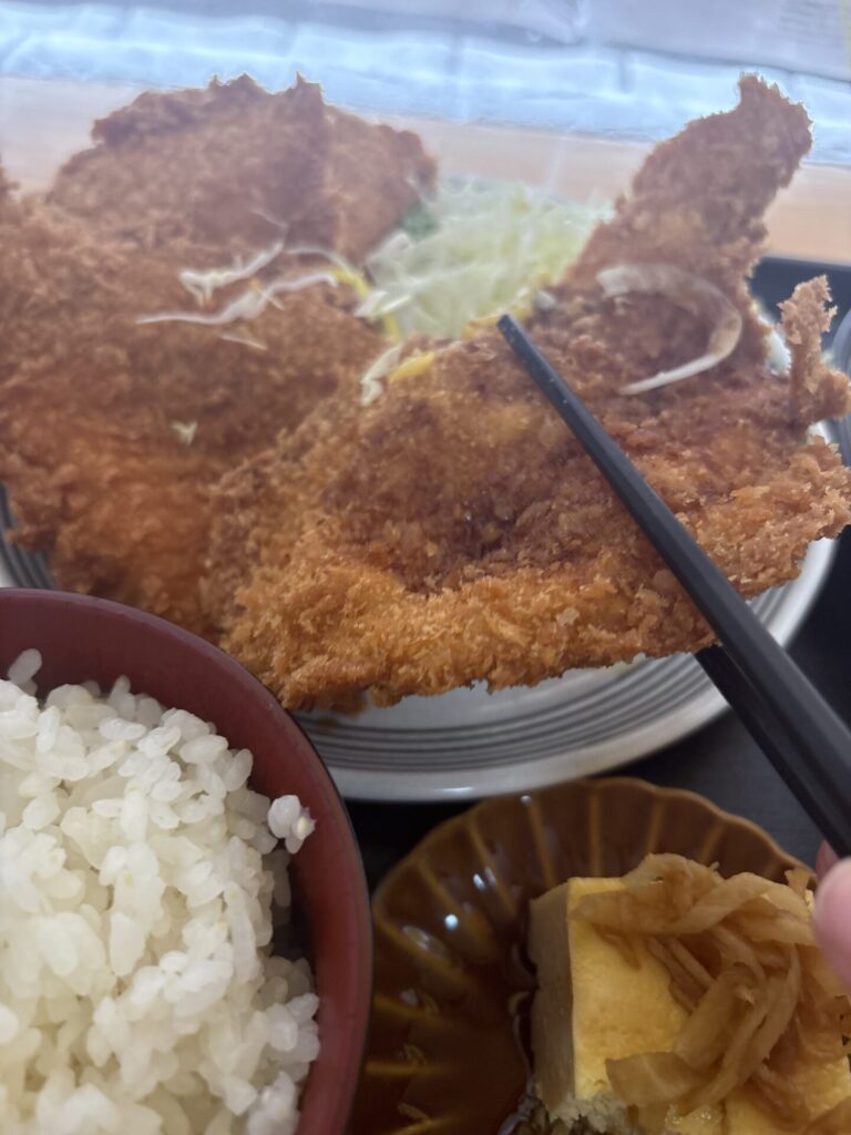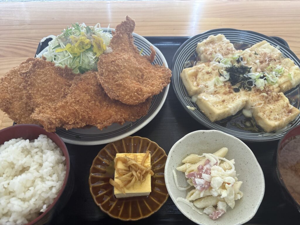 伝わるだろうか。あまりのボリュームに圧倒される。普通の定食にチキンカツが4枚もついているのだ。メインは豆腐のはずだが、どっちがメインか分からない。