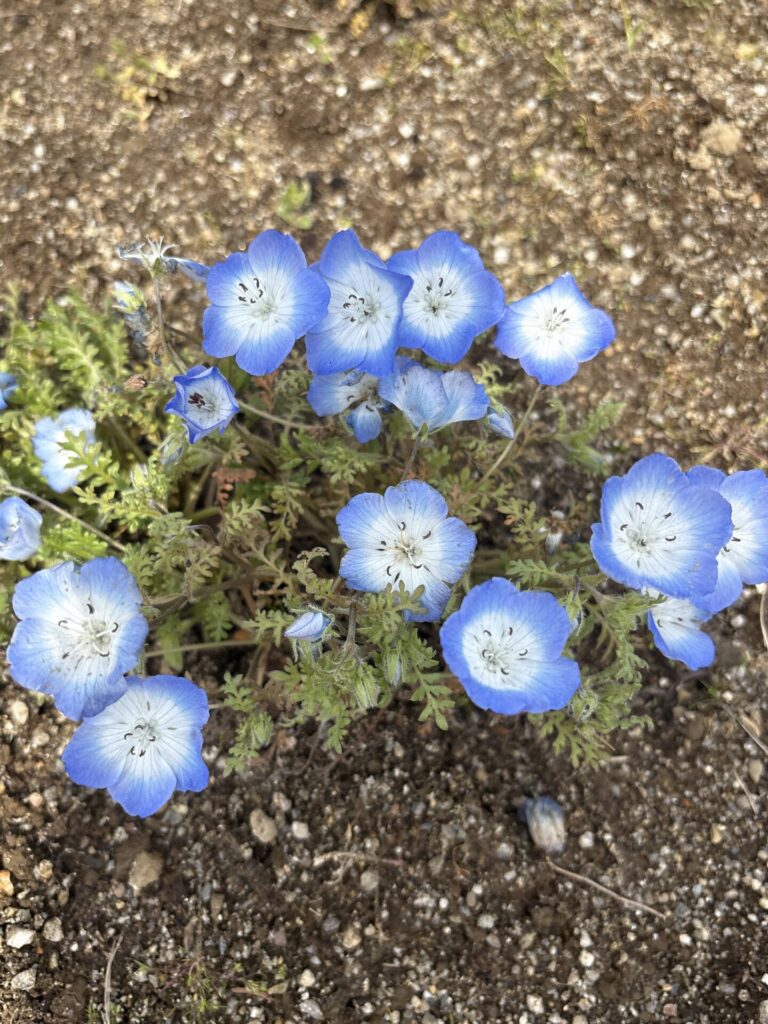 ガーデンに入って7~8分ほど歩くと、ネモフィラ畑が!