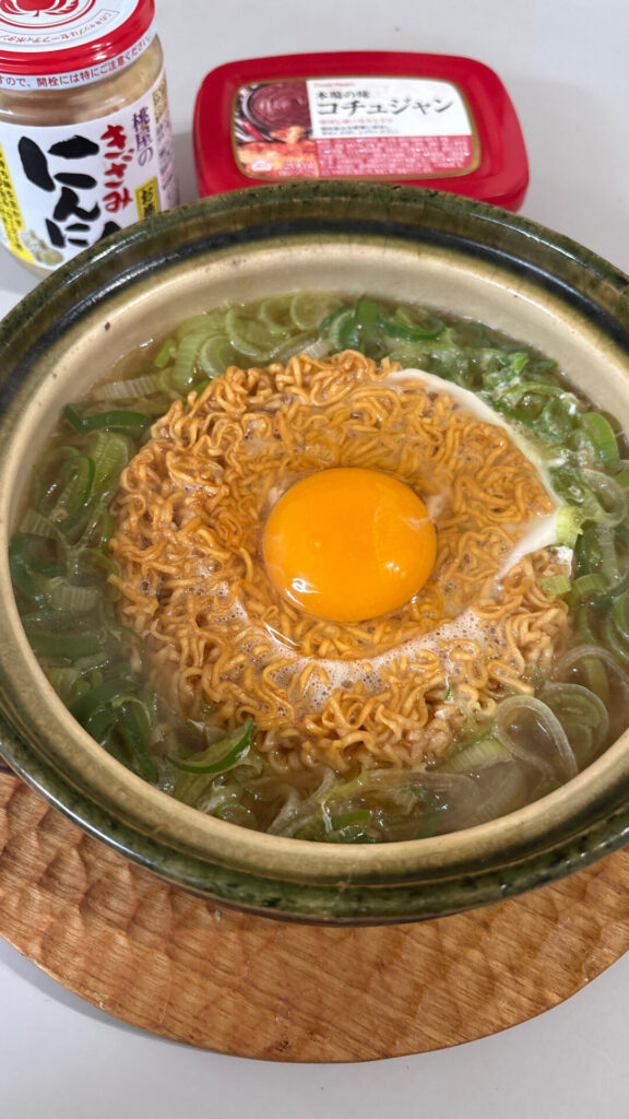 味変用に、コチュジャンと桃屋のきざみにんにくも同時に準備しておく。