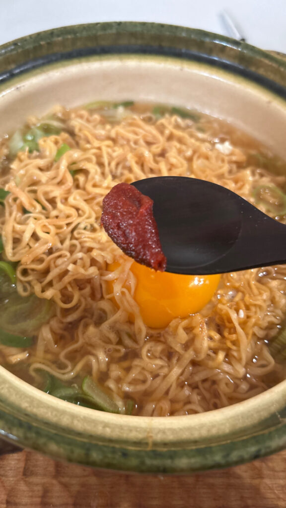 まずは少量のコチュジャンを入れていく。辛みがチキンラーメンと抜群に合うのである。