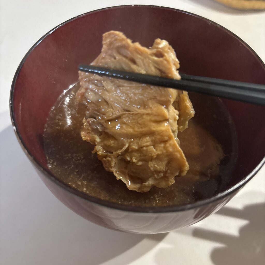 箸で身を取り出していただく。元から半分に切ってあるので普通の箸で簡単に身が取れる。