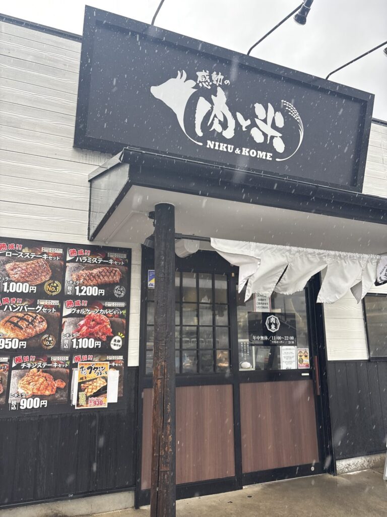というわけで超暴風雨の中、車を出して「感動の肉と米」に向かう。