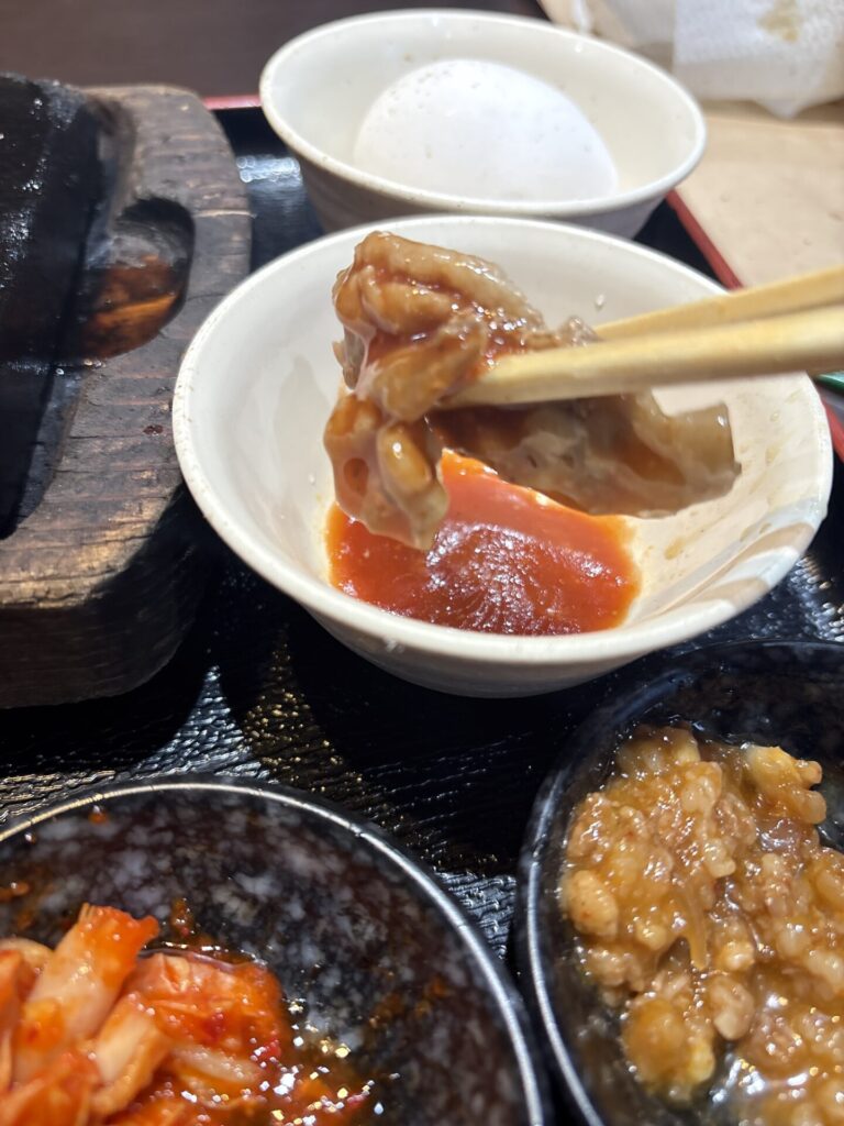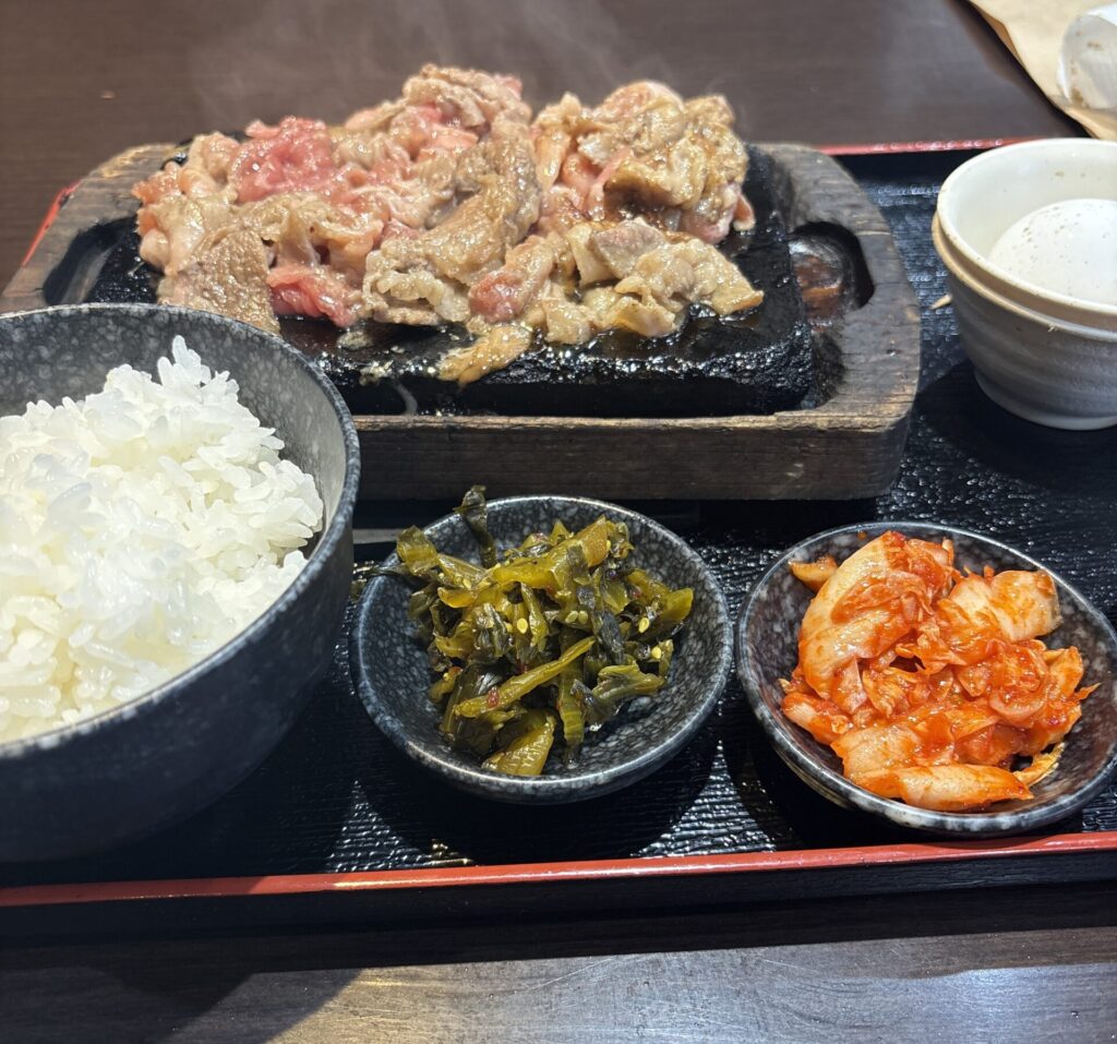こんもりしたカルビを鉄板においたままにしていたので、全部火が通るか心配だったが大丈夫であった。(次来た時はおかずを取りに行く前に鉄板にまんべんなく並べておこう・・・)